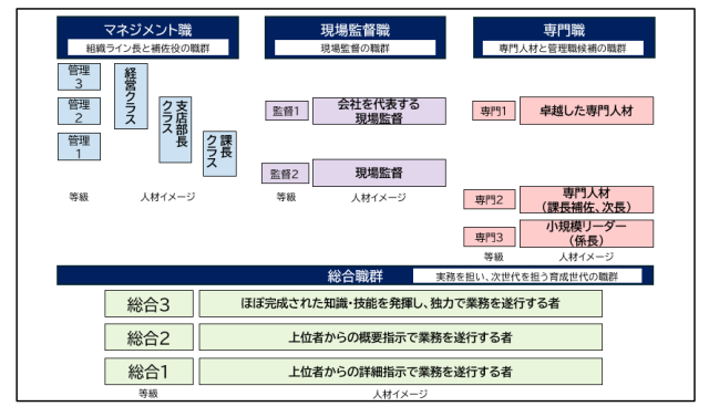 第一に、計画的に人材を輩出できる「複線型キャリアパス体系」を導入し、マネジメント職・現場監督・専門人材それぞれの成長ルートを明確化しました。
